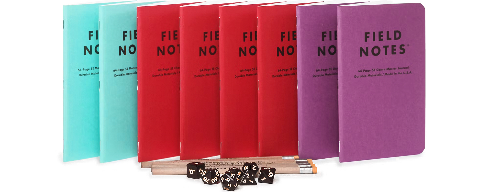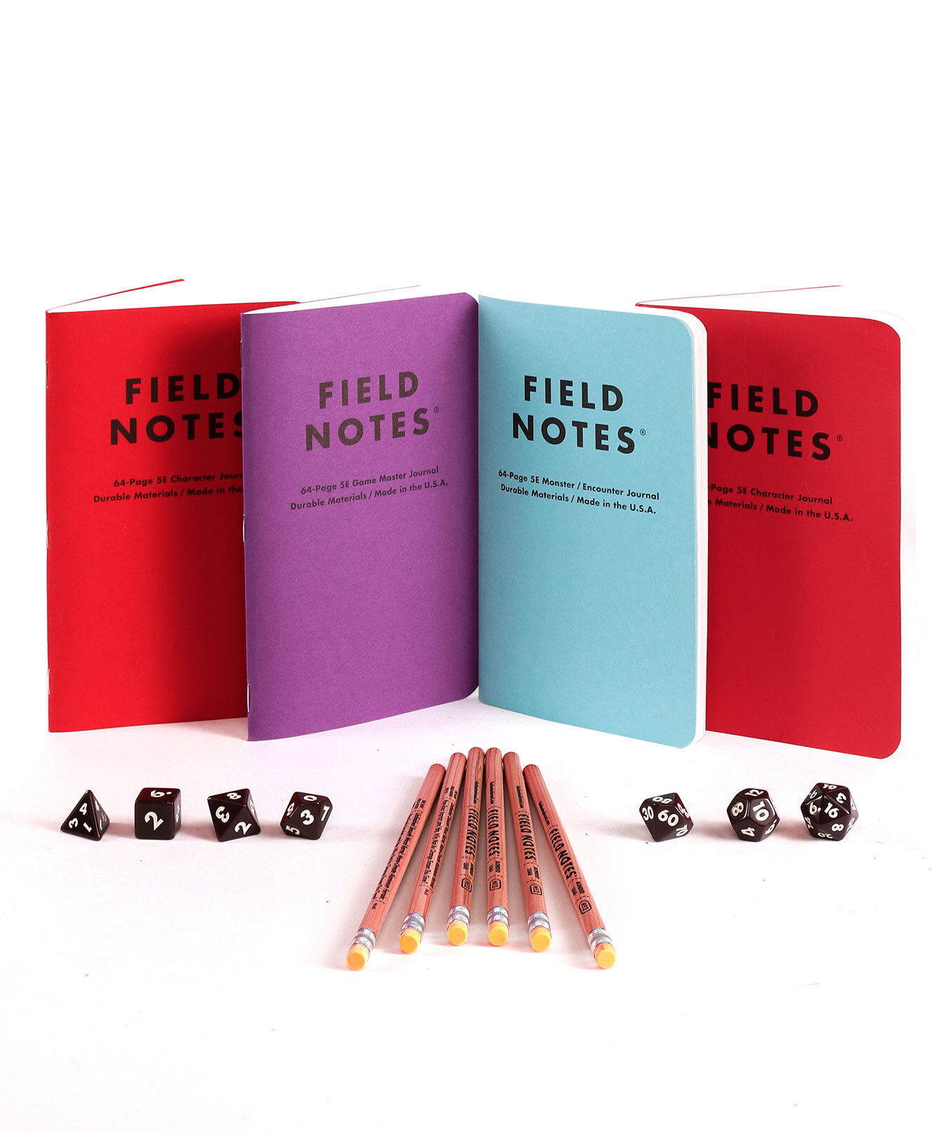We like to surprise people, but sometimes the solution is obvious. If the question is, “What kind of gaming dice would Field Notes make?” Of course the answer is, perfectly simple ones featuring the Futura Bold typeface. So that’s what we did and they are only available as part of the Adventure Set. Let’s roll.