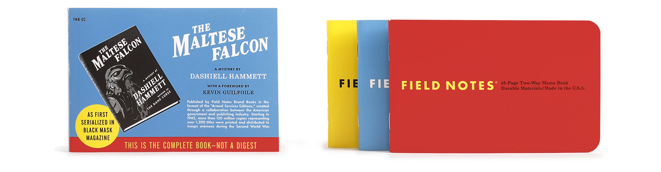 In addition to two 3-Packs of “1943” Memo Books, subscribers will receive the best subscriber bonus to date: Field Notes Books’ edition of The Maltese Falcon, published in the style of the 1940s Armed Services Editions.