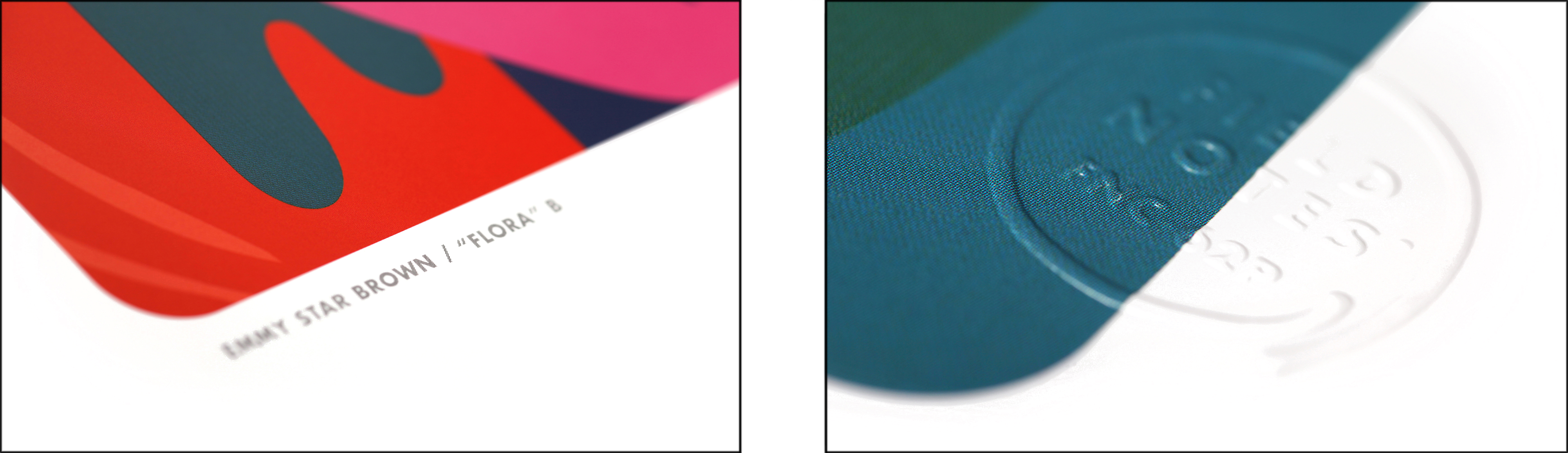 Each print is signed and numbered by the artist and embossed with a Field Notes “Flora” stamp overlapping the lower right corner of the image. The prints are 12"×12" and they will look great in a bright kitchen, kid’s room, summer place, or right behind you in your home office. They’ll look great in either custom or off-the-shelf frames, with or without matting.